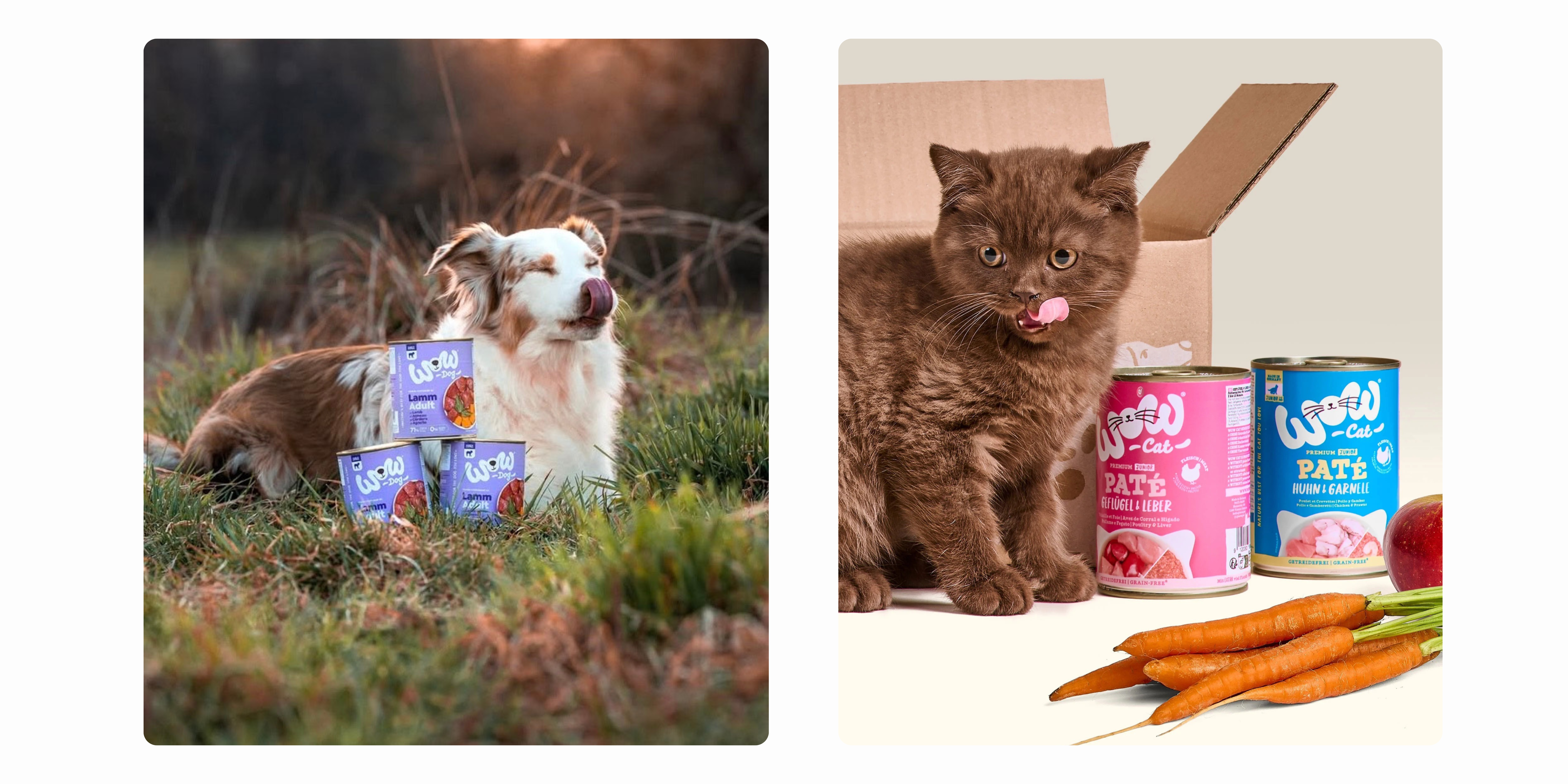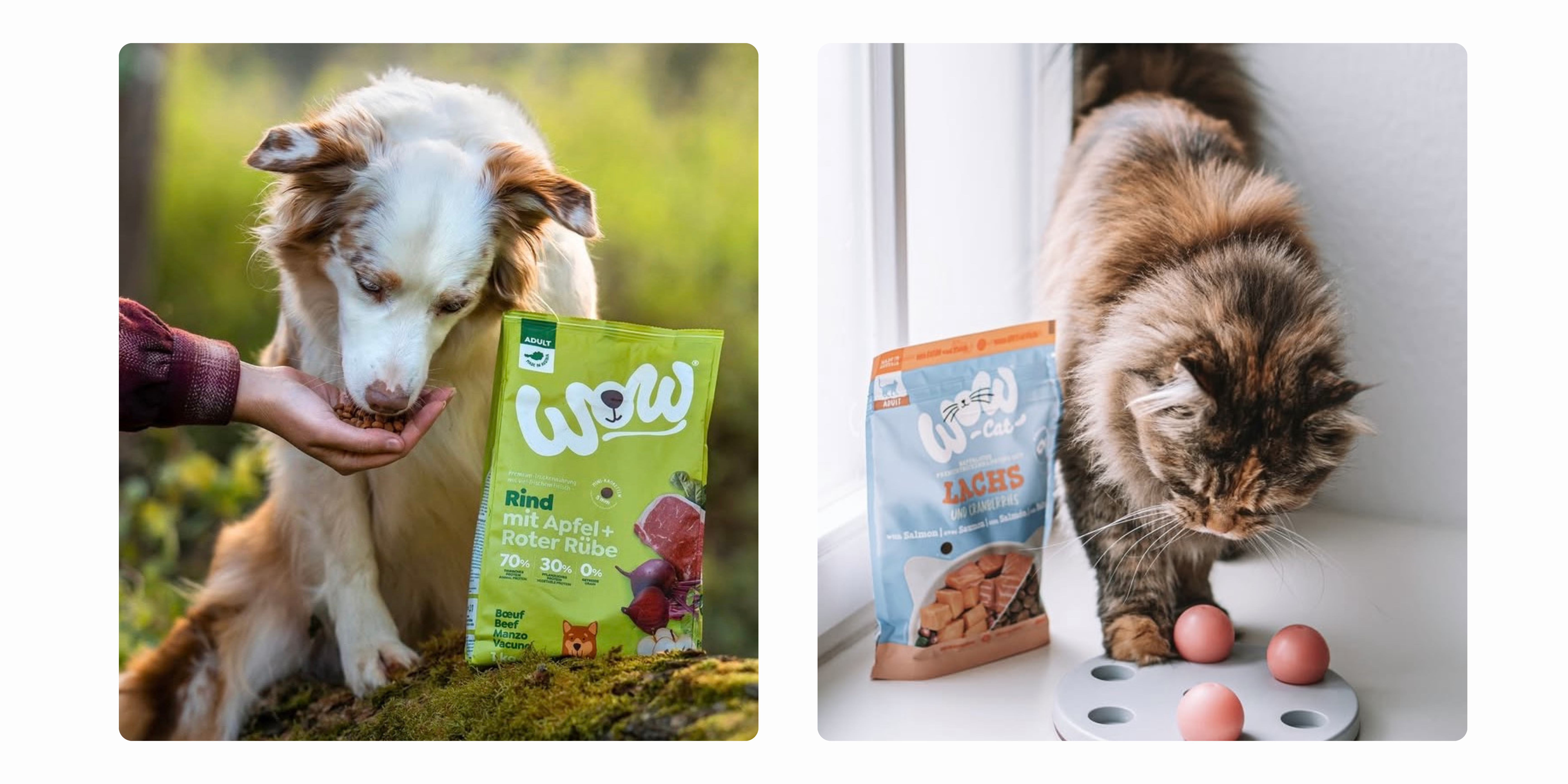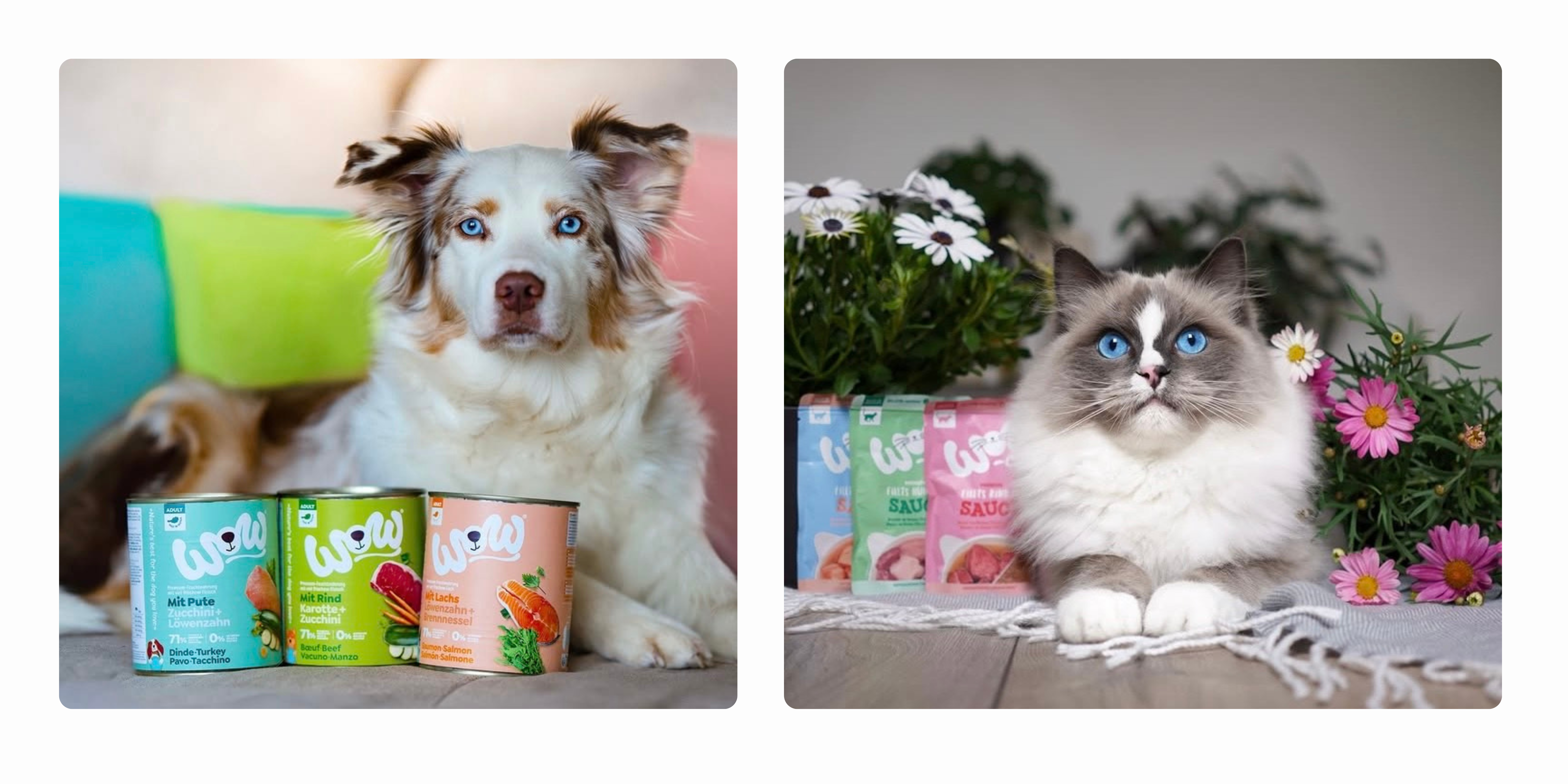 Granule pre psy a mačky prémiovej kvality s vysokým obsahom mäsa značky WOW a Buddy.