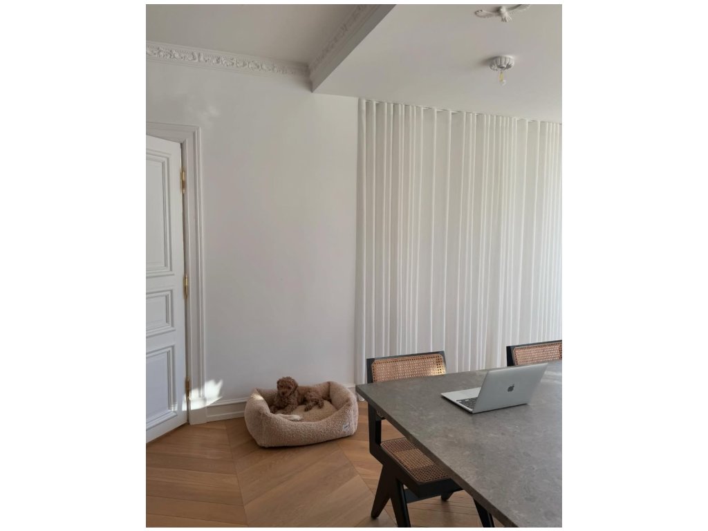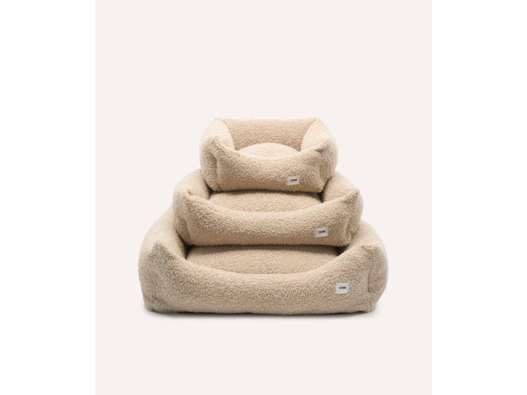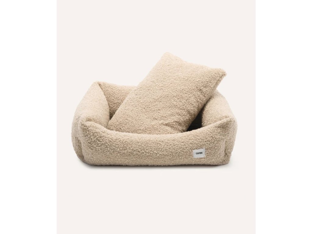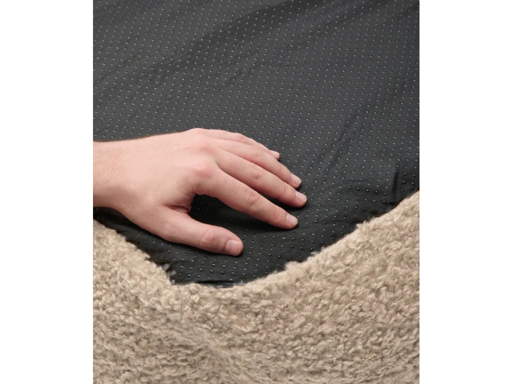 Odnímateľný a prateľný pelech pre psa s látkou imitujúcou ovčiu kožu, vyrobený v Európe. Výplň je vyrobená z recyklovanej peny. Výplň je možné manuálne vybrať a nastaviť výšku pre všetky typy psov.