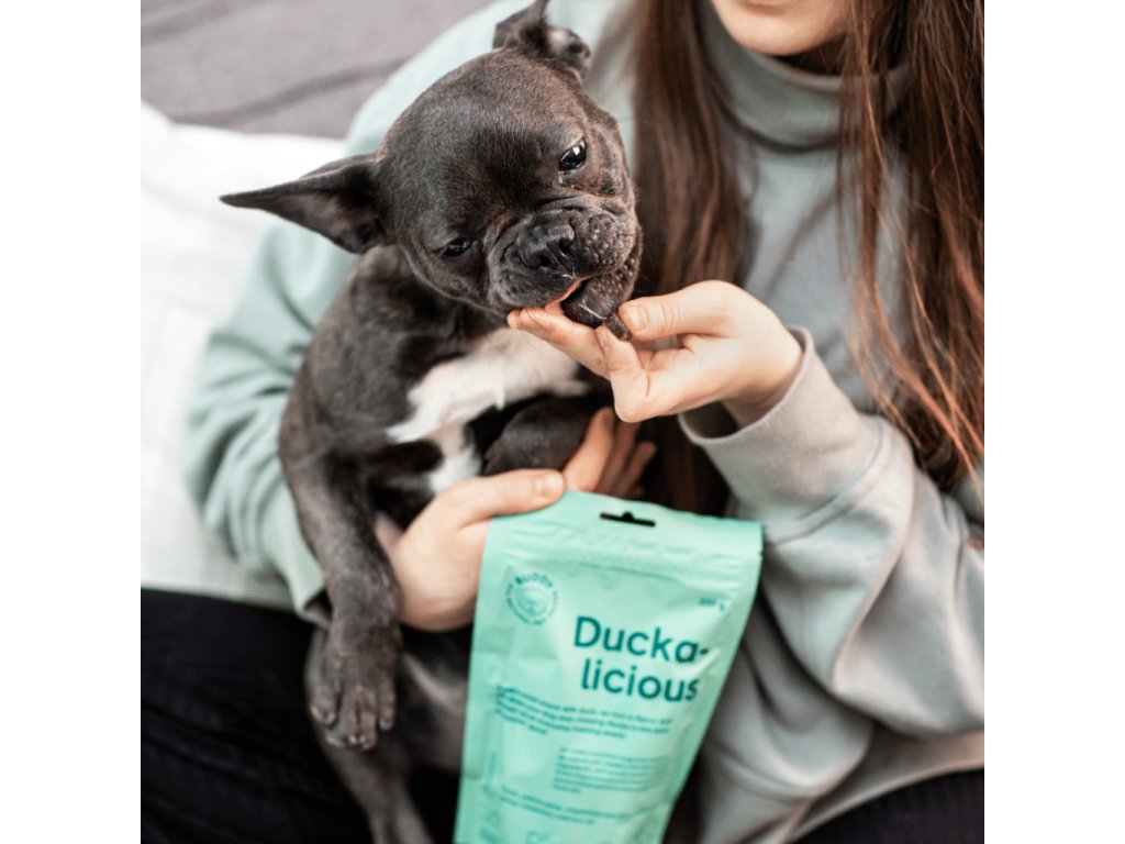 Mäkká a chutná psia maškrta vyrobená z čerstvého kačacieho mäsa a rozmarínu, bohatá na bielkoviny a omega-tuky.