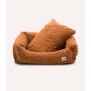 Odnímateľný a prateľný pelech pre psa s látkou imitujúcou ovčiu kožu, vyrobený v Európe. Výplň je vyrobená z recyklovanej peny. Výplň je možné manuálne vybrať a nastaviť výšku pre všetky typy psov.