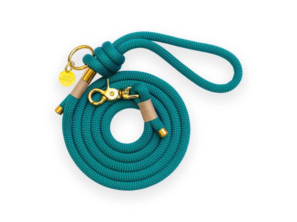 Vďaka svojej krásnej, sýtej a sviežej zeleno-modrej farbe dodá naše smaragdové lanové vodítko pre psa vašim prechádzkam nádych originality.