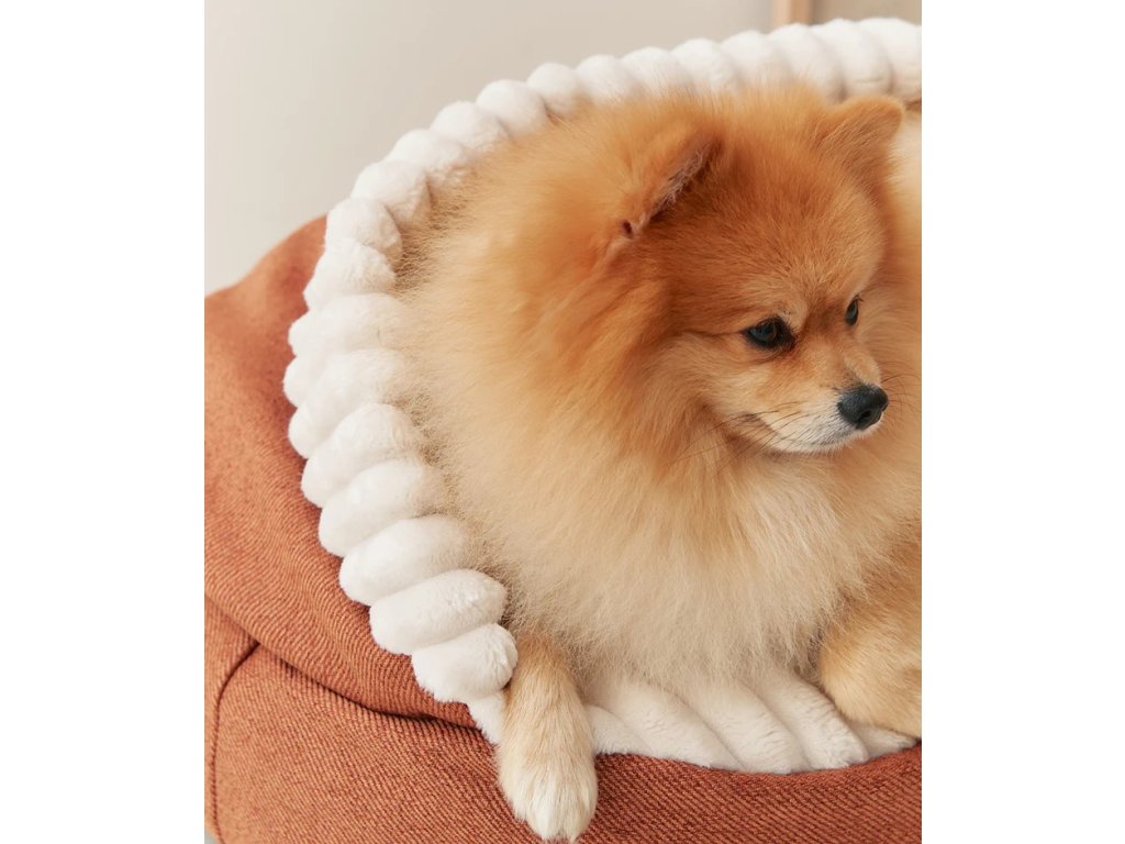 Odnímateľný a prateľný pelech pre psa s hrubým, plyšovým mančestrovým vnútrom a mäkkým ženilkovým vonkajším poťahom. Vyrobené v Európe. Výplň je vyrobená z recyklovanej peny. Výplň je možné manuálne vybrať a nastaviť tak výšku pre všetky typy psov.