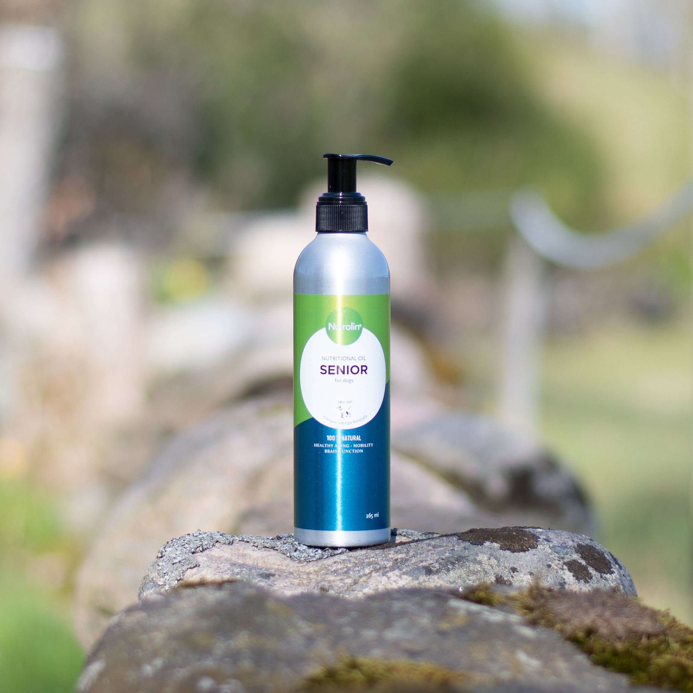 Olej Nutrolin® SENIOR sa odporúča pre všetkých psov od 8 rokov a pre väčšie psy aj skôr.