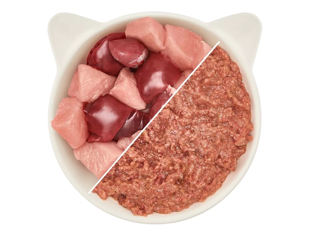 70 % hydiny, napr. morky, kačice, kuracieho mäsa (55 % hydiny (zložená z hydinových žalúdkov, hydinového mäsa, hydinového srdca, hydinového krku, hydinového tuku) a 15 % hydinovej pečene), 29 % vývaru, 1 % minerálov