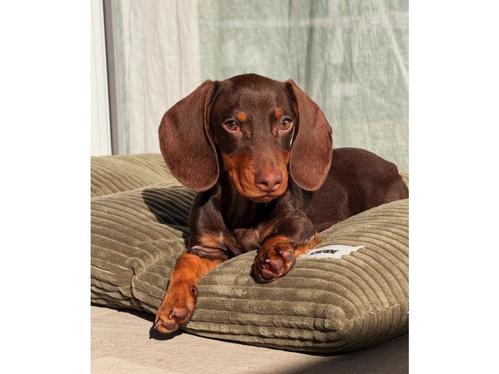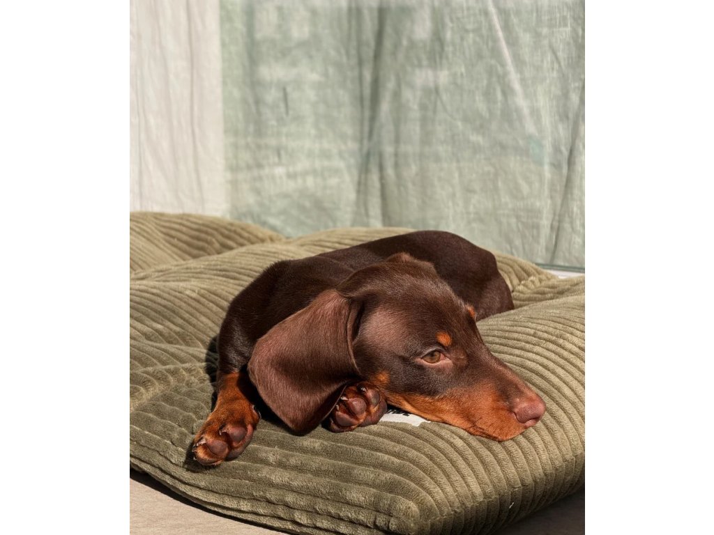 Vankúš pre psa z mäkkej, plyšovej manšestrovej látky vyrobený v Európe.